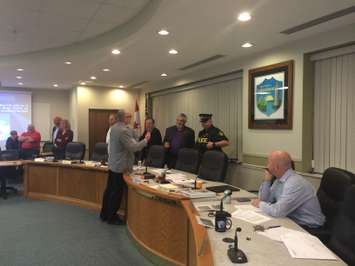 OPP officers arrived at council chambers in Lakeshore's town hall shortly after a heated argument between two people in the audience appeared to be heading towards a fight. No arrests were made and no charges are pending.
