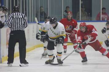 The Flags took the lead early in the first period with one goal, and then one more with just over two minutes into the second. However, the Lakers made a fast comeback before the end of the second with two goals of their own to tie things up 2-2. After a scoreless third period, and no scoring in overtime, the Flags snatched the win from Wallaceburg in a shootout.