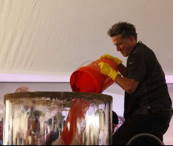 Celebrity chef Bob Blumer pours tomato juice into the World Records attempt at the largest Bloody Mary cocktail, September 19, 2018. (Photo by Angelica Haggert)