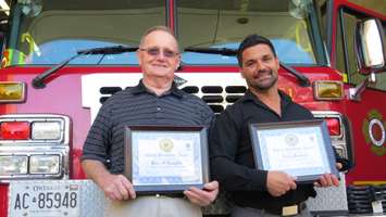 Doug O’Loughlin and Adam Mortezof received Citizen Involvement Awards in a ceremony held Monday at London Fire Station No. 1.