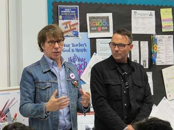 Mike and Patrick Downie visited Central Public School in Woodstock, Antler River Elementary School in Chippewa of the Thames, and Holy Rosary Catholic Elementary School in London on Friday. The schools are among several within the London District Catholic School Board and the Thames Valley District School Board that have signed up to become Gord Downie & Chanie Wenjack Fund Legacy Schools.