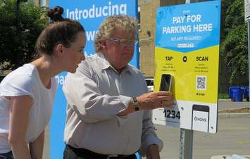 Mayor Ed Holder got a crash course on using the new technology at the official HonkTAP launch on Thursday at the municipal parking lot at 641 Queens Avenue. He was quick to praise it for its user-friendly design.