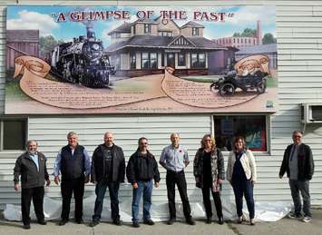 Located on the south side of 280 Josephine St., right next to Wingham Town Hall, the mural entitled "A Glimpse of the Past" depicts a scene of the old Wingham Grand Trunk Railway Station, an old steam engine train and an old vintage automobile from the 1911 era, similar to an early Ford Model-T.