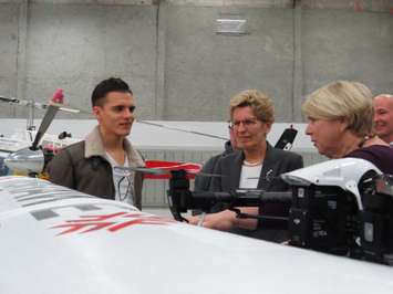 Premier Kathleen Wynne and Deputy Premier Deb Matthews speak to students at Fanshawe College's Norton Wolf School of Aviation Technology, January 24,2017. (Photo by Miranda Chant, Blackburn News.)