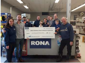 Miller Lake Rona owners Dennis and Kathy Doidge are calling on all building centres in Grey Bruce to meet or exceed their donation of $5,030.