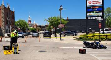 Police say witnesses reported the motorcyclist was travelling south on Downie Street at a high rate of speed prior to the collision.