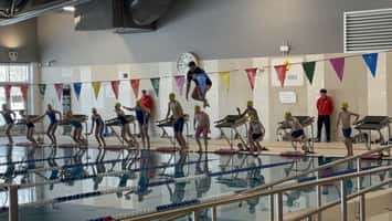 Mayor Luke Charbonneau kicked off the festivities in memorable fashion, performing the first cannonball into the new pool to officially welcome the community into the centre.