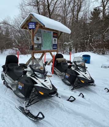 Riders are expected to stop for any police-operated snowmobile displaying flashing red and blue lights and should always wear helmets and appropriate safety gear. Snowmobilers are urged to stay on approved trails, respect private property, and never operate a snowmobile while impaired.