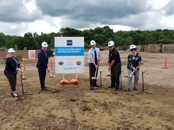 EPCOR President and CEO Stuart Lee was joined by Ontario Minister of Government and Consumer Services Lisa Thompson, Huron-Kinloss Mayor and Bruce County Warden Mitch Twolan, Kincardine Mayor Anne Eadie and Arran-Elderslie Mayor Steve Hammell on Tuesday on a rural property near Glammis to officially break ground on the $80 million initiative.