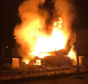 OPP officers on patrol early Saturday morning spotted flames coming from the building on Main Street in Sauble Beach. Officers at the scene estimated the flames to be 50 to 60 feet high.