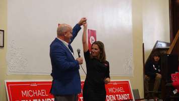 Chrystia Freeland served as Minister of Foreign Affairs and appeared in support of Bruce-Grey-Owen Sound Liberal candidate Michael Den Tandt. Freeland says she and Den Tandt have known each other for years since they worked together as journalists in publications like the Globe and Mail.