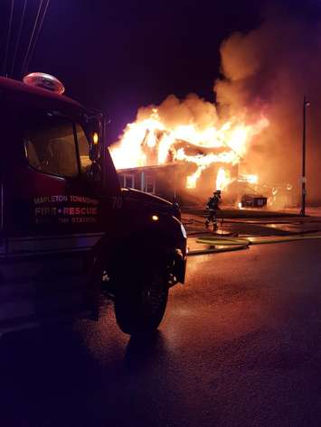 Mapleton Fire Chief Rick Richardson confirmed Monday morning that just after 2 a.m., Mapleton Fire Rescue received the call about the fire at Country Sisters on Wellington Line 86 just west of Dorking. The call was made by a driver passing by, as well as a neighbour of the property.