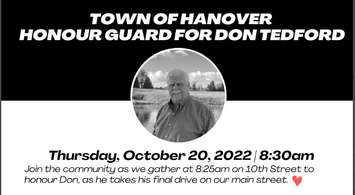 Please join us as we gather on 10th St to honour our dear friend and colleague, Don Tedford, on Oct 20th at 8:25am, as he takes his final drive down our main street ♥️ We will form an 'Honour Guard' as Mighton Funeral Home pauses at the Civic Centre on their way to Owen Sound. pic.twitter.com/29BtLHwgCB