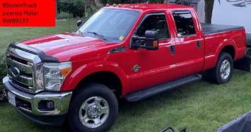 At some point between 9 p.m. on September 28 and 8 a.m. on September 29, a red Ford F250 with license number BW89137 was stolen.