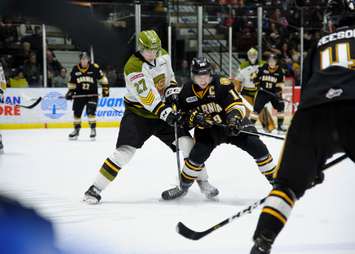 After a scoreless first period the Sarnia Sting scored three times in the second and three times in the third enroute to a 6-2 win over the visiting North Bay Battalion. Sean Josling and Hugo Leufvenius scored two goals each for Sarnia. Leufvenius, now with a team high 34 goals, admits the team got off to a slow start. "I think they were a little bit more hungry then we were but then at the end of the first and the mid-part of the second period we really came on top. We started to push them down and kept scoring and it was a good two points for the team." Nick Grima (4) opened the scoring for Sarnia at three minutes into the second period on the power play. Harrison Caines tied the game four minutes later before Leufvenius scored at 9:42 and potted the game winner at 13:33. Sarnia native Franco Sproviero (20) made it 4-2 two minutes into the third. Josling scored four minutes later. Mitchell Russell scored a late goal for the Battalion before Josling (18) added an empty-netter. Ethan Langevin stopped 27 of 29 shots in the Sarnia net while Christian Propp turned aside 33 Sting shots. The Sting host the OHL West Division-leading Sault Ste. Marie Greyhounds Sunday afternoon. The pregame show starts at 1:35 p.m. on 103.9 FM - 1070 AM CHOK.