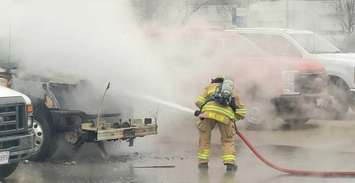 A photo posted to their Facebook page showed a firefighter spraying water on the engine of the truck to douse the fire.