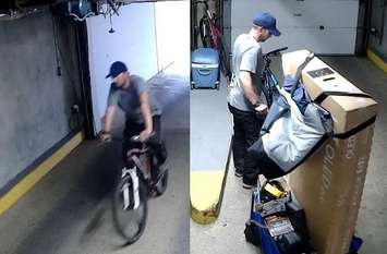 Lambton OPP has released photos of a suspect accused of stealing items from a parking garage in Point Edward.