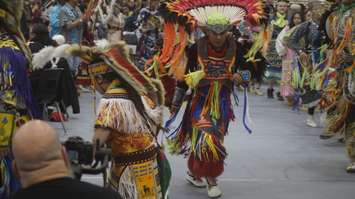 Dancers at the Lambton College Pow Wow, April 3, 2025 (Photo by: Lindsay Newman/ Blackburn Media)
