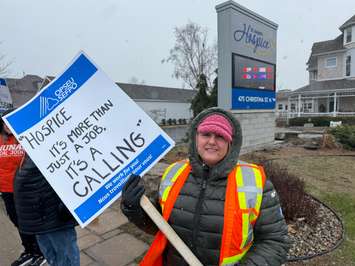 Workers at St. Joseph's Hospice Sarnia-Lambton braved freezing rain, snow, and bitterly cold wind as they demonstrated along Christina Street Monday afternoon.