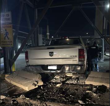 Sarnia police were called to the site at around 11:30 p.m. for reports of a vehicle crashing through the gate on Imperial Avenue.