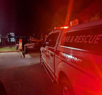 Point Edward Fire and Rescue responded at around 10 p.m. and arrived to find a truck with a boat attached fully submerged at the boat launch.