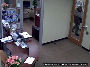 Photo of a suspect entering the Windsor Essex Economic Development Corporation. (Photo courtesy of Windsor Police Services.)