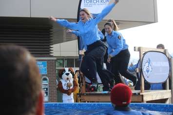 A steady stream of law enforcement officers, auxiliary officers, students, faculty and alumni from St. Clair College made the walk up a ladder in -2 C temperatures and a -11 C windchill to jump into a cold pool of water, all in the name of a good cause, in the fifth annual Windsor-Essex Polar Plunge to benefit the Law Enforcement Torch Run for Special Olympics Ontario.