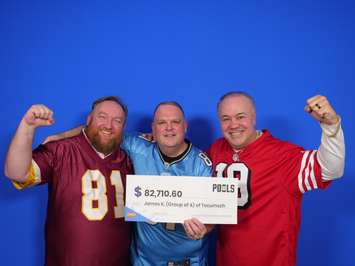 The group of four coworkers, Christopher Nielsen, Sean Hinnegan, and Sergio Dibiase of Windsor, and James Kaschak of Tecumseh, have played the OLG's Pools game for ten years. One weekly wager has resulted in a windfall worth $82,710.60.