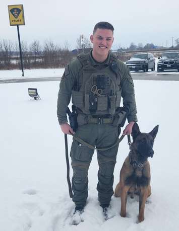The Ontario Provincial Police Essex County detachment welcomes a new K9 Unit after a 21-week General Service Course. It's qualified in tracking missing/lost persons, criminal apprehension, and tactical obedience.