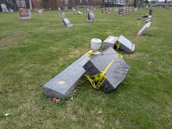 "We want to assure the families affected that we are committed to repairing the damaged headstones," said Diocese of London Cemetery Property and Project Manager Gisele Grieves in an email to WindsorNewsToday.ca. "However, please note that we will need to wait for weather and ground conditions to improve before we can safely bring the necessary equipment into the cemetery to undertake the repair work. We will provide updates on the restoration timeline as soon as it becomes feasible."